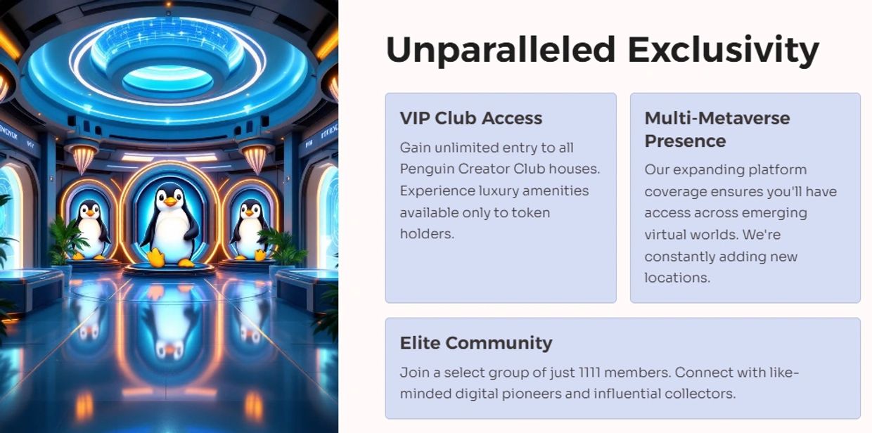 Unlock the future of digital identity with Penguin Creator NFTs. These exclusive collectibles not only represent your unique identity but also serve as a gateway to premium experiences across the entire Xspectar ecosystem—and beyond. Combining stunning artistry with real-world utility, Penguin Creator NFTs are both coveted assets and powerful tools, offering unmatched value in the ever-evolving digital world. Get yours now and step into a new era of digital ownership and access..