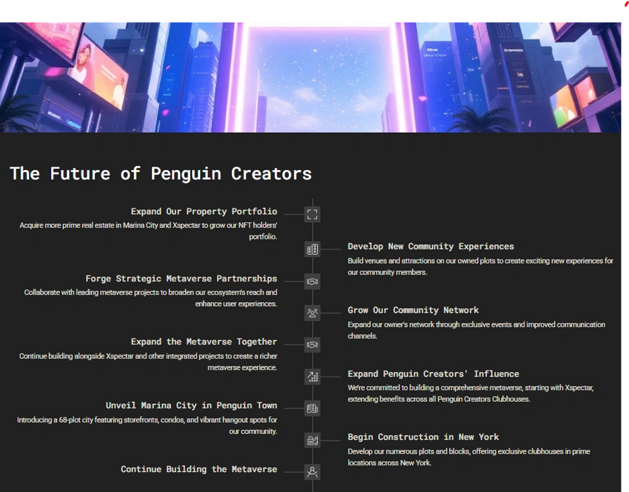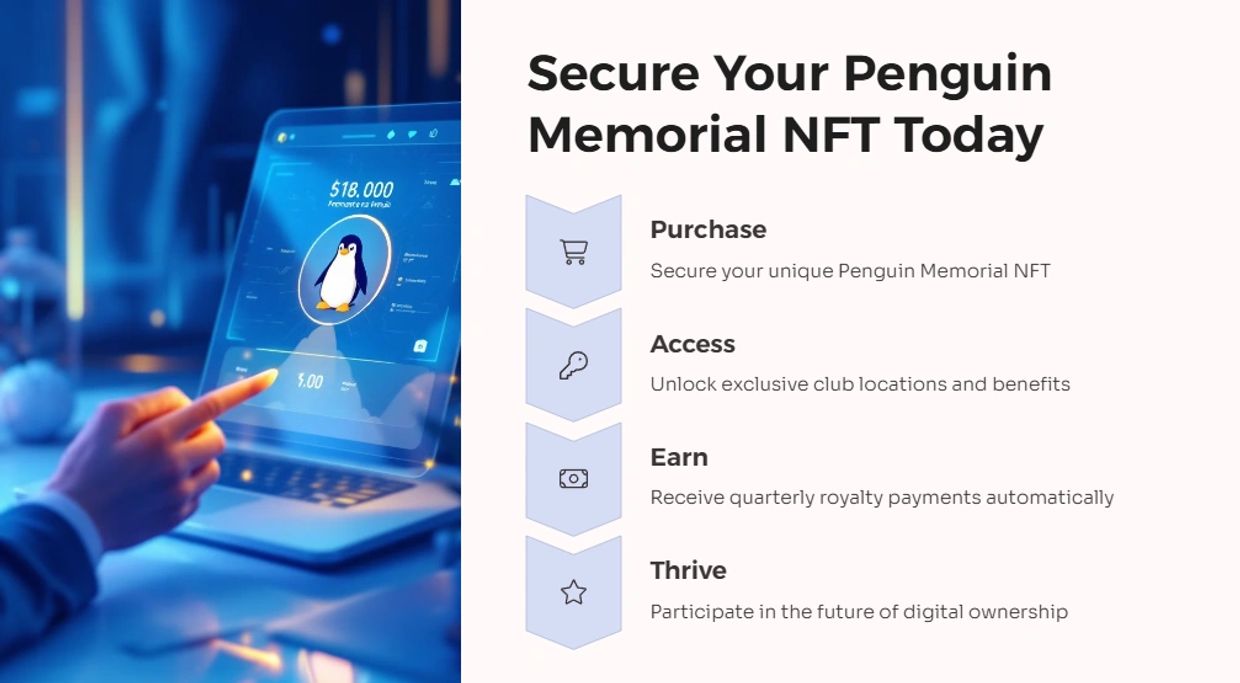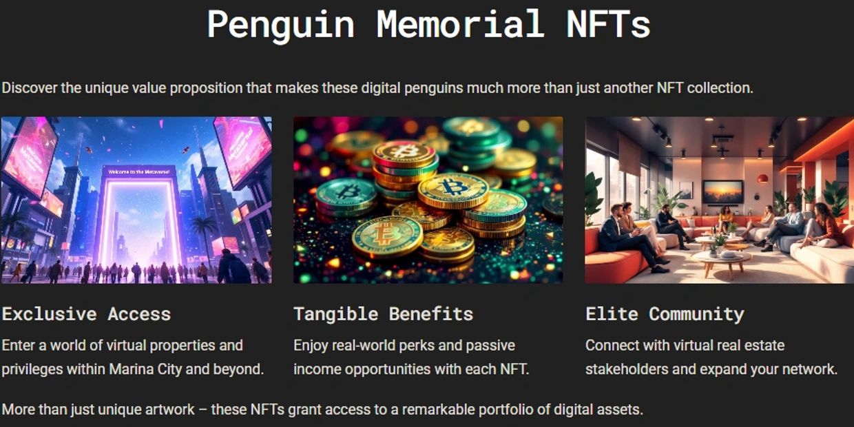 Secure your spot in digital history with our exclusive, limited-edition Penguin Memorial NFTs—only 1,111 tokens available. Each NFT will have your chosen name engraved on the iconic Memorial at Marina City, ensuring your legacy lasts forever. Also a One bedroom fully Furnished Condominium in Xspectar's Marina City. But it’s not just about recognition—these unique tokens unlock premium access across multiple metaverses and offer the chance to earn passive income through our innovative revenue-sharing model. Don’t miss this rare opportunity to own a piece of the future and leave your mark on the digital world!